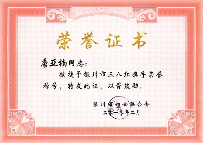 6總經理唐亞楠同志被評委銀川市首屆“守法好公民”